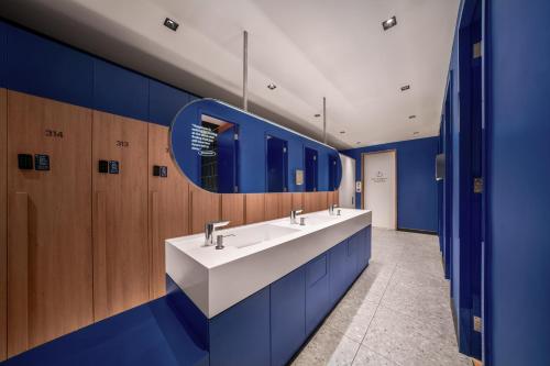 Level3にある到着フロアの1つ下のLevel2に位置していて、「Sleeping Cabins & Showers」という表示に沿って歩いていくとホテルに到着します。