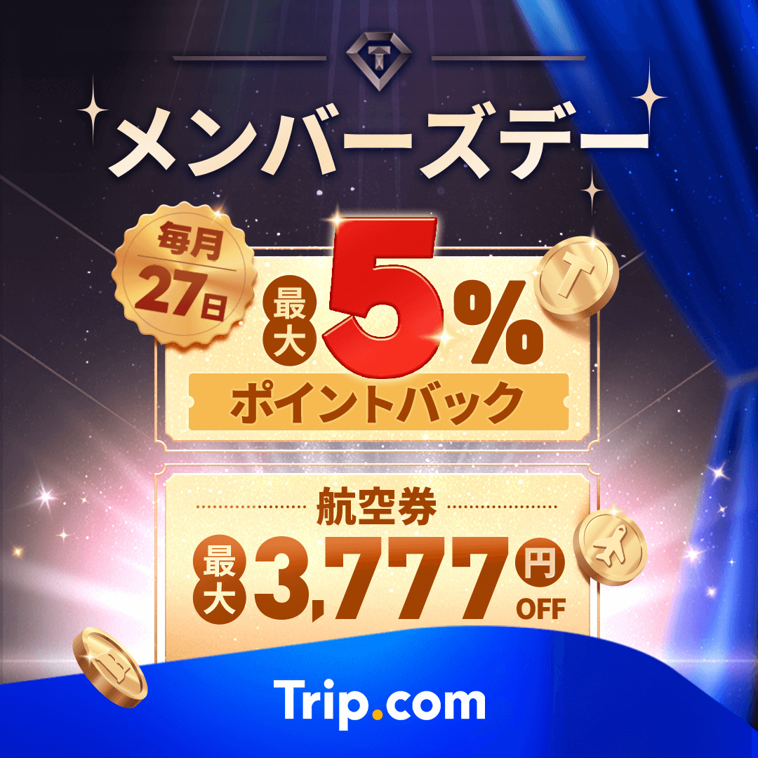 毎月27日は旅行予約がお得に!Trip.comのメンバーズデー
