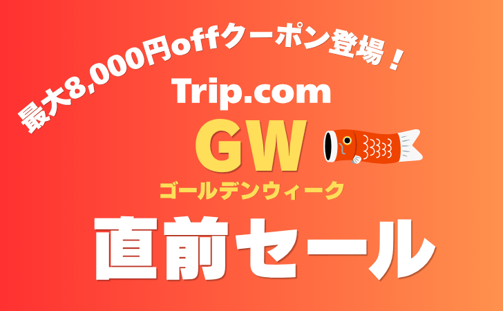2026年4月13日〜4月26日までTrip.comゴールデンウィーク直前セールが開催。最大8,000円オフクーポンをはじめ、お得なセール品&クーポンが登場します。ホテル&航空券予約、各種アクティビティに活用してください。