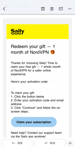 プレミアムプランを購入すると、NordVPNの特典についてのメールが登録したメアドに届きます。