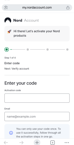 「Enter your code」の箇所にある「Activation code」と「Email」にそれぞれ入力。