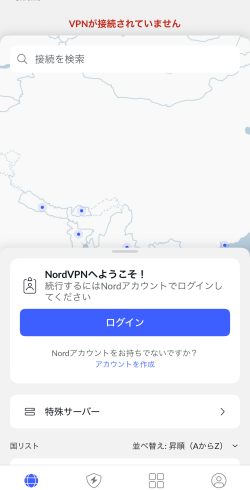 NordVPNのアカウントがある場合はログイン、ない場合はアカウントを作成します。