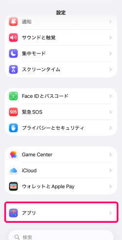 iPhoneの場合、「設定」→「アプリ」を選択。