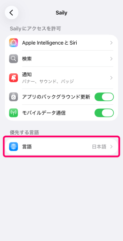 「優先する言語」をタップしてください。
